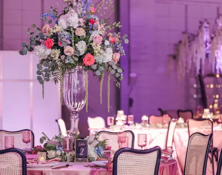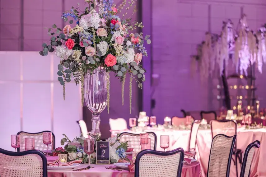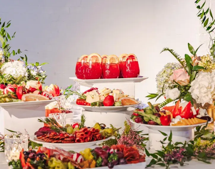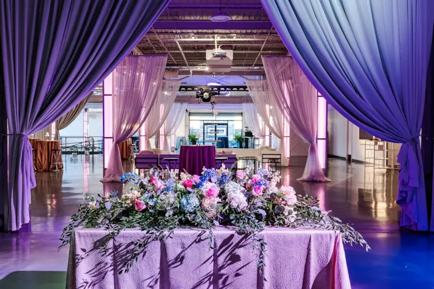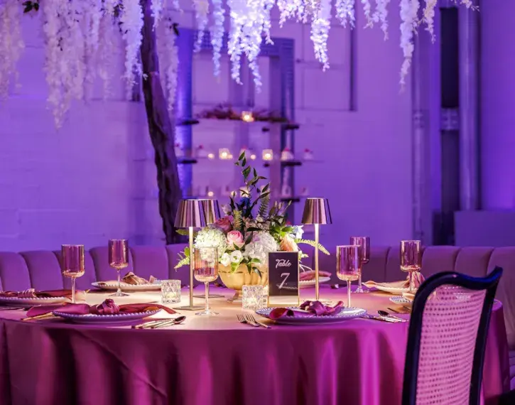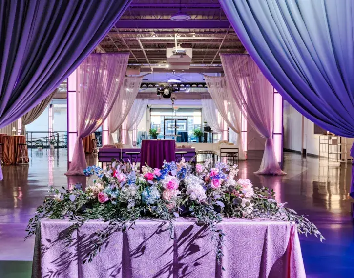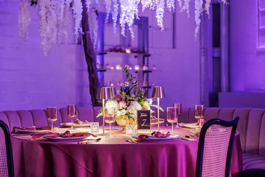 With heavy florals in shades of pink and purple, velvet textures, dramatic lighting, and curated culinary displays, each area of The Crane Bay was styled to reflect a different type of event possibility. From weddings to galas, corporate receptions to social celebrations, the photoshoot brought every corner of the venue to life.